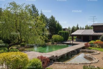 Просторный участок площадью 44 сотки. Дорожки и въездная группа выложены брусчаткой из гранита. По периметру территории высажены взрослые хвойные и лиственные деревья и кустарники. Организована система автополива.
