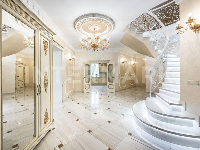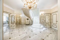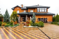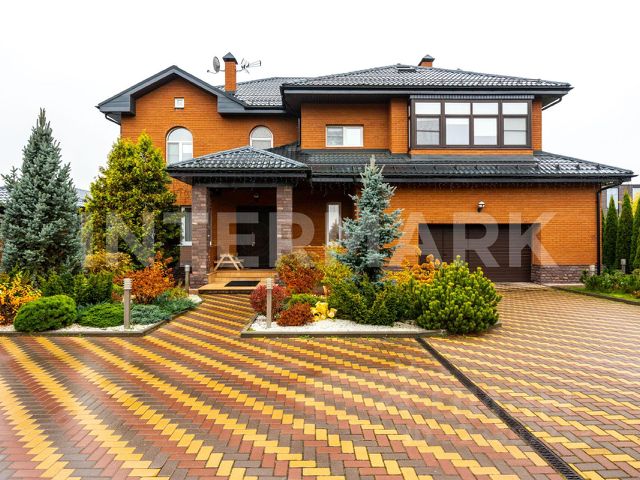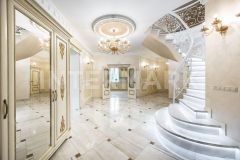 Номер объекта: 4330. Общая площадь дома составляет 1471 кв.м., из них не учтены в поэтажном плане БТИ: спортзал 110 кв.м., мансарда 360 кв.м. зона для персонала 80 кв.м., винный погреб 40 кв.м. На земельном участке имеются отдельные строения, в том числе баня с комнатой отдыха 45 кв.м., беседка с зоной барбекю 22 кв.м., мини бассейн 42 кв.м. со спа джакузи на 6 персон ПЛАНИРОВКА: Цоколь: холл, винный погреб с зоной дегустации, котельная. 1 этаж: прихожая, холл, кухня-столовая с выходом на террасу, гостиная, каминный зал, гостевой блок с выходом на улицу (зона домашнего кинотеатра, две спальни, игровая, гардеробная, санузел); зона для персонала с отдельным входом со двора и собственным входом в дом (дополнительная кухня, гостиная, три спальни, прачечная и ванная комната), гараж на 3 авто с мойкой (оснащен оснащен всем техническим оборудованием). 2 этаж: холл с выходом на веранду, мастер-спальня с гардеробной, ванной комнатой и балконом, 3 спальни с гардеробными, ванными комнатами и балконами, тренажерный зал с панорамным видом на сад. Мансарда: холл, зона отдыха, бильярдная, зона бара с мангалом, караоке с панорамным остеклением и выходом на балкон, переговорная, две спальни, санузел. ХАРАКТЕРИСТИКИ ДОМА: Фундамент: ленточный (ширина 90 см). Материал стен: пенобетонный блок + кирпич, толщина стен 65 см, мансардный этаж внутренняя отделка стен: бамбук (Колумбия), имитация камня (Швеция), плитка (Испания). Кровля: мягкая черепица KATEPAL. Окна: немецкие пластиковые стеклопакеты KBE. Высота потолков: 3,30м, мансарда - 7м. Полы: 1 этаж: керамогранит (Италия) с системой водяного подогрева, 2 этаж: инженерная доска Khrs (Швеция). Лестница: монолитное основание, полностью отделана мрамором Bottichino (Италия). Сантехника и мебель в ванных комнатах от компании Villeroy&Boch Германия, смесители и полотенцесушители от Migliore(золото 24 карата) и Cezares Lord Италия Мебель: Fratelli Barri (Италия). Просторный зеленый участок с ландшафтным дизайном. На участке растут вечно зеленые кустарники, хвойники, разбит сад с плодовыми деревьями, вдоль забора туи. Прогулочные дорожки вымощены брусчаткой, разведено уличное освещение. Организована гостевая парковка на 8-10 машин с въездом на территорию особняка через автоматические откатные ворота ДОПОЛНИТЕЛЬНЫЕ ПОСТРОЙКИ: Отдельная зона барбекю с мангалом, с раковиной ГВ и ХВ, обеденными столами и и диванами из натурального бамбука. Русская баня на дровах с комнатой отдыха, мини бассейном и спа ванная/джакузи на 6 мест находятся в отдельных строениях на участке. ИНФРАСТРУКТУРА: Поселок находится под круглосуточной охраной (видеонаблюдение и патрулирование), въезд через контрольно-пропускной пункт; на территории широкие асфальтированные дороги с уличным освещением. Внутри есть два супермаркета, облагорожен пруд с зоной отдыха, детские и спортивные площадки, частный детский садик и местная коммунальная служба. Купить дом с бассейном в Москве.