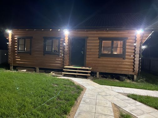 Гостевой дом- баня, площадью 30 кв.м. С высокими потолками до 6 метров, со спальней на мансардном этаже, кухней-гостиной, санузлом и парной, отделанной кедром, дровяная печь, кондиционер.