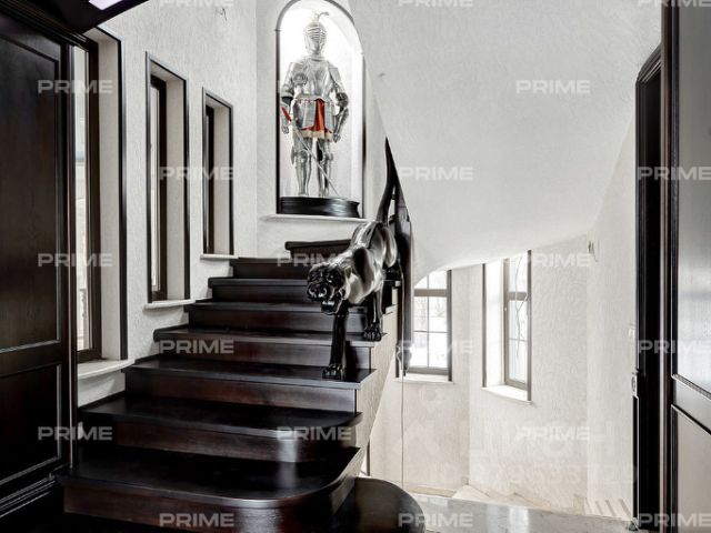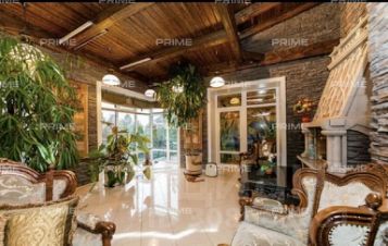 В основном доме: гостиная-столовая с мраморным камином и выходом на террасу, кухня с кладовой комнатой, 6 спален, кабинет и жилая комната свободного назначения, 4,5 с/у, функциональная постирочная, высокие потолки - 3,5 м на первом этаже и 3,2 м на втором.