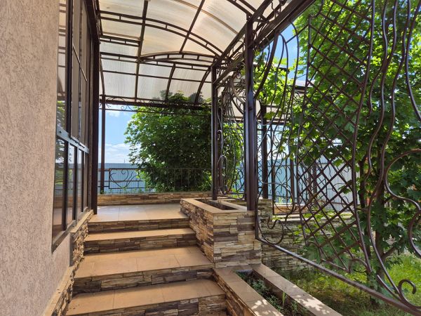 • Веранда с барбекю 14,4 кв.м. (каменная печь с монолитным фундаментом, столешница из натурального камня, рукомойник с электроподогревом, электро-вертел, мебель из массива дерева: стол 2,5м x 0,9м)