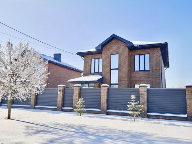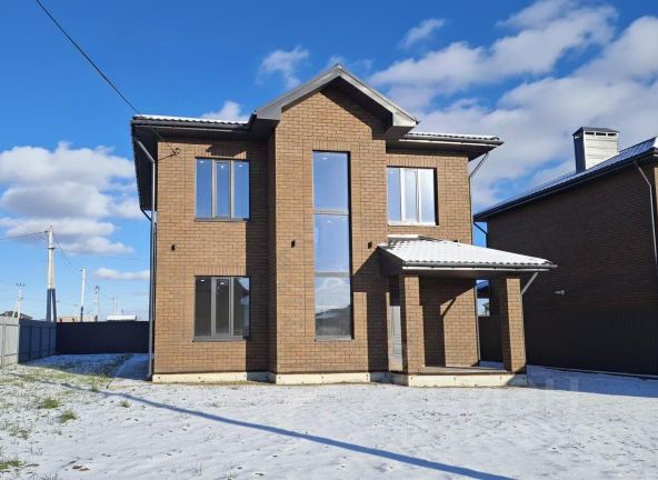 Построен дом из кирпича, фасад отделан немецким клинкерным кирпичом + шамот, медная фальцевая кровля. Отделка дома выполнена по индивидуальному дизайнерскому проекту. Большие понорамные окна, светлая отделка дополняют дом светом. Для внутренней отделки использовались дорогостоящие материалы: паркет (дуб), мрамор (Италия), двери (массив дерева). Лестница в доме сделана из мрамора с перилами ручной работы с элементами ковки. Итальянская кухня выполнена из массива, есть вся необходимая встроенная техника: Smeg, сантехника Vileroy&Bosh.