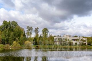 По границе участка водоем со своим пирсом и весельной лодкой для прогулок и рыбалки.