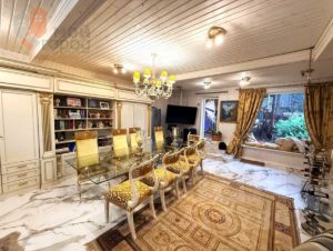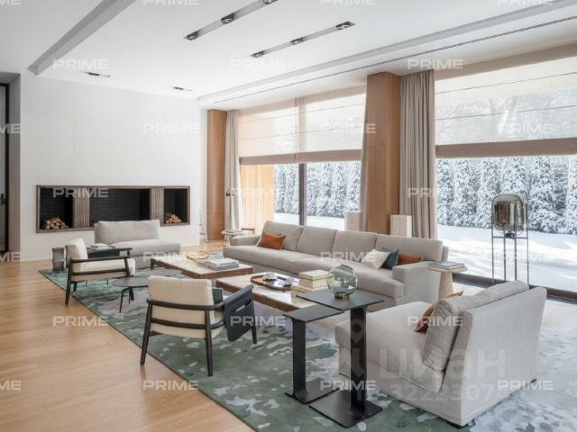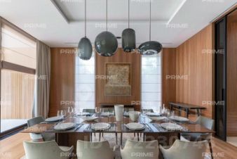 Первый этаж - парадная часть виллы, где утонченный стиль объединяется с функциональностью. Здесь есть все для комфортной жизни: элегантная входная группа со знаменитыми итальянскими светильниками FLOS и дизайнерским круглым столом ANDREAU WORLD гармонично сочетающимися с настенными панелями из эвкалипта. Лаконичный, наполненный светом кабинет с итальянской мебелью от POLIFORM и Meridiani, просторная гостиная с панорамными окнами, авторским камином работы знаменитого скульптора Александра Чичкина, мебелью от Meridiani и PORADA, уютным индийским ковром ручной работы и шикарным видом на окружающие сосны. Столовая со столом от PUNT MOBLES на 10 персон и стульями РОТОССО, с выходом на террасу. Кухня с мраморной столешницей EMPERADOR DARK на острове для уютных домашних завтраков и всей необходимой премиальной техникой: плита, вытяжка, духовой шкаф BERTAZZONI.