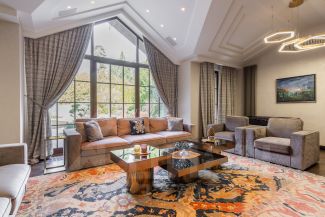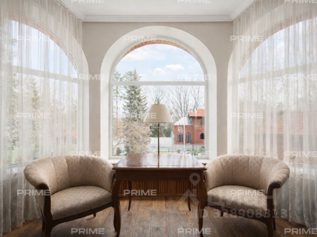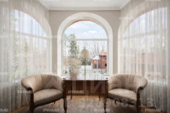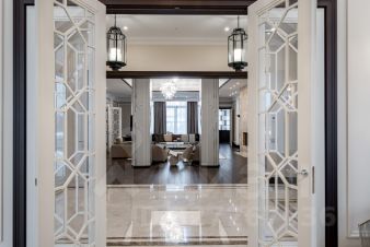 Третий этаж - это мастер-сьют площадью 110 м, созданный, как отдельный мир внутри дома. Просторная спальня с зоной отдыха наполнена светом, а панорамные окна и собственная терраса открывают живописный вид на сад. Две гардеробные, выполненные на заказ, позволяют организовать пространство без компромиссов. Просторная ванная комната выполнена с использованием великолепного мрамора AFYON VIOLET, сантехники GESSI и VILLEROY & BOCH. А ванна, расположенная у панорамного окна, позволяет наслаждаться видом окружающей природы. В спальне - торшер от JNL и бра от EICHHOLTZ, которые создают мягкий вечерний свет, идеально подходящий для чтения или отдыха.