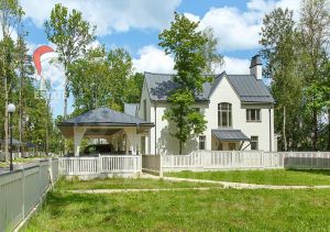 ID 8540. Акция: при покупке дома с Villagio Realty вы получаете год сервиса - абсолютно бесплатно! Дом с панорамными видами и эксплуатируемой кровлей в "Миллениум Парк". Новый дом площадью 1223 кв. м. под чистовую отделку готов к воплощению самых смелых дизайнерских решений. Панорамное остекление наполняет пространство светом круглый год, открывая захватывающие виды из каждой комнаты. Эксплуатируемая кровля предоставляет уникальную возможность обустроить зону отдыха на крыше с потрясающими видами, создавая дополнительное пространство для развлечений и релаксации. В доме предусмотрено всё необходимое для комфортного проживания: - 6 мастер-спален с возможностью индивидуальной планировки каждого помещения. - Уютный кабинет для работы или творчества. - Просторная терраса для вечерних посиделок на свежем воздухе. - Помещение для персонала, позволяющее обеспечить высокий уровень сервиса и комфорта. - Удобный гараж в доме для вашего автопарка. Участок площадью 10 соток расположен в тихой части посёлка, вблизи парка, что обеспечивает спокойную атмосферу и лёгкий доступ к зонам для прогулок и активного отдыха. Есть возможность увеличения земельного участка до 21,5 сотки. Элитный посёлок "Миллениум Парк" называют "русской Венецией" за возведённые рукотворные водные каналы. Все дома возведены среди каналов и парков, которые соединены между собой аллеями — по ним можно гулять часами, наслаждаясь красивой европейской архитектурой и изысканными ландшафтными композициями. Поселок окружают первозданные леса, чистейший воздух и развитая инфраструктура Новой Риги. И всё это ближнее Подмосковье, до Москвы всего 19 км. Этот дом станет идеальным выбором для тех, кто ценит простор, свет и уникальные архитектурные решения, стремясь создать свой собственный уголок роскоши и комфорта.