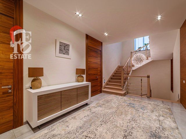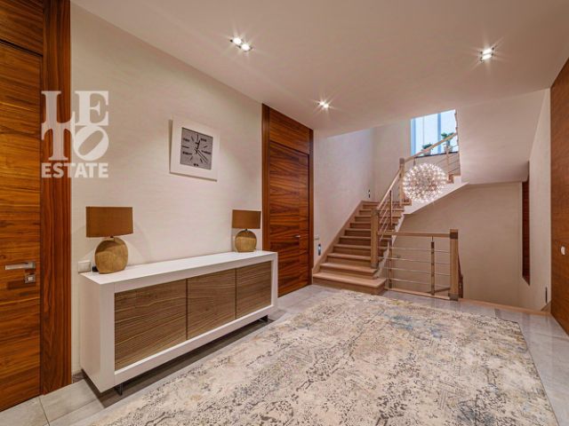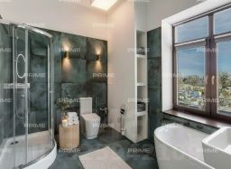 Дом полностью готов для постоянного проживания, есть вcя необходимая встроенная техника и мебель. Для внутренней отделки использованы дорогостоящие материалы. Керамогранит фирмы Porcelanosa, пол инженерная доска - дерево дуб. Кухня со встроенной техникой, холодильник с ледогенератором. Теплый пол разведен в зонах, где плитка. Лестница сделана из натурального дерева - лиственница, дверные порталы - канадский орех. Освещение в доме - Centersvet.