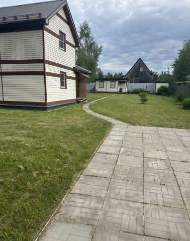 Дoм бpусовой, 2 этажный- каркасный, отделка сайдингом. Крыша покрыта металлочерепицей. Фундамент выполнен из кирпича. Отопление печное, во всех комнатах по этажам установлены электрические батареи. Вода введена в дом централизованная, септик.