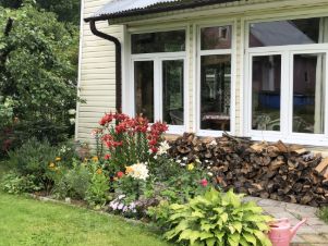 Уютная атмосферная дача в экологически чистом месте, в СНТ "Рабочий", участок 22, район д. Воронино. Легко добраться по Ярославскому шоссе. 68 км от МКАД и 12 км от г. Сергиев Посад. В экологически чистом районе со смешанным лесом (грибы, ягоды, птицы, воздух!), в 5 минутах езды до озера Торбеево и озера Малинники. Рядом круглый год родники с чистой водой. Недалеко от Гремячего ключа (Сергея Радонежского). Остановка находится в 100 метрах от ворот СНТ, дом в 200 м от главных ворот. Дом 2х-этажный, светлый, площадь 98 м2. Возведён из бревна и бруса. 2-й этаж-каркас. Отделка светлым канадским сайдингом. Глубокий ленточный фундамент, внутри дом обшит вагонкой. Установлены большие окна из ПВХ. Индивидуальный проект. Планировка: 1-й этаж: веранда, увитая лимонником, две изолированные комнаты с кирпичной печью, кухня, холл - столовая. 2-й этаж: балкон 20 м2 , просторная светлая зона отдыха с высоким потолком, подсобное помещение - кладовка. Между этажами установлена очень удобная прочная широкая лестница с перилами. Коммуникации: электричество 2 фазы, 15 кВт. Дренажный колодец 3 кольца для сбора дождевой воды для полива. Вода - летний водопровод. 3 поливочных крана входят на участок с разных сторон. Спутниковое телевидение НТВ плюс. Отопление - кирпичная печь. с прозрачной дверцей. Вся мебель остается покупателям. Участок 10 соток, прямоугольной формы, сухой, очень ухоженный и плодородный. Теплица 18 м2, высокие грядки и цветники. Со стороны дороги полностью огорожен новым забором. С хорошими соседями - светопроницаемые перегородки. Автомобильная мощеная площадка с отдельным въездом. На участке газон, дорожки из плитки. Плодоносят: яблони, груши, орех, ирга, слива, виноград, жимолость, крыжовник, чёрная и красная смородина, малина, актинидия, клубника. Много декоративных кустарников: лиственница на штамбе, можжевельники и туи. Рябина, калина Бульдонеж, клен Гиннала, спиреи и лапчатки, чубушник, сирень, пузыреплодник и дерены, хосты, гортензии, лилии, флоксы, пионы, розы и мн. др. Постоянное пышное цветение с апреля по октябрь! Строения: На участке большая 2-х этажная баня из бруса с дровяной печью HARVIA, проточный водонагреватель в душевой, стиральная машина Zanussi, гамак, кресло, кровать. Перед баней наливной каркасный бассейн 3 м . Жилой верхний этаж, можно использовать для размещения гостей. Хозблок 10 м2 для инструментов и инвентаря, ЭКО туалет, летняя открытая кухня-веранда с мангалом, водопроводом и освещением. До самого дома отличная дорога круглый год. СНТ огорожено. Вода артезианская с глубины 250 м. Имеются автоматические ворота с видеонаблюдением на въезде в СНТ. Дороги регулярно чистят в зимний период, своевременно вывозят мусор. Очень близко сезонный магазин. Можно подключить высокоскоростной интернет. Много домов используются для круглогодичного проживания. Регулярно приезжает продуктовая лавка, фермеры привозят мясные и молочные продукты. : Участок отмежёван, один собственник. Отличный дом, участок 10 соток в городском округе Сергиево-Посадском Московской области.