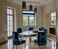 В банном комплексе: русская печь с изразцами, на террасе - горячая встроенная фурако и холодная купель, столовая-гостиная, 12-футовый бильярд, гостевая спальня и шикарная парная комната с панорамным окном и живописным видом на участок.