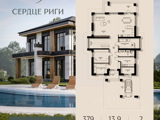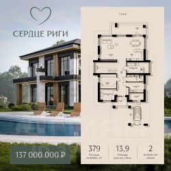 В доме по проекту кухня-столовая, большая гостиная с выходом на террасу, гостевая (кабинет), гардеробная- прачечная, холл, 5 санузлов, постирочная, гостевая квартира. Отапливаемый гараж на 2 машины, современное инженерное оборудование. Высота потолков 4,5 м.