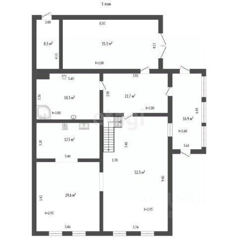 БАНЯ (22.3 кв.м) : комната для отдыха (11 кв.м) с 2-мя спальными местами, баня с парной и душем (11.3 кв.м).