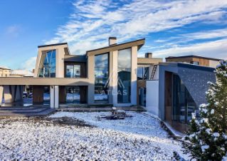 Просторный дом 638 кв.м в стиле Альпийского шале с панорамным остеклением на лесном участке 30,2 сотки представлен в отделке White Box. Расположен в тихой и уютной части поселка бизнес-класса Покровское-Рубцово на Новорижском шоссе.