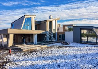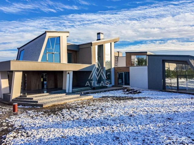Особенности дома: интересная планировка, высокие потолки (3,3 м - на 1 этаже, 5,5 м - на втором), лесной участок - утопает в зелени, живописный вид из панорамных окон на вековые сосны, рябины, дубы.