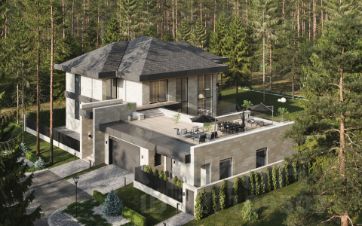 1-й этаж: холл, гостиная с камином, кухня- столовая с выходом на патио и зону барбекю, выходом теплый контур в зону Спа-зоны с бассейном (13:4 метра), гараж на два машиноместа, квартира для персонала: кухня, душ, с-у), котельная.