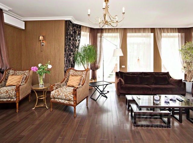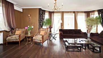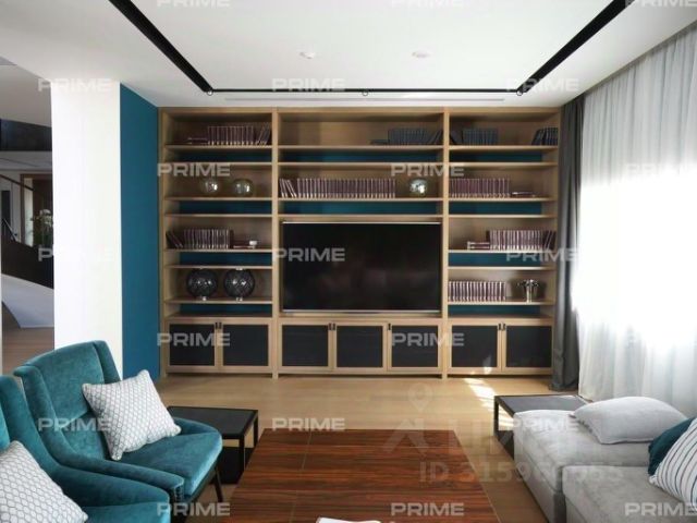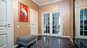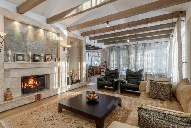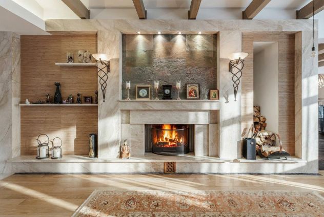 В отделке используются только премиальные материалы: мрамор (отделка камина, раковина в гостевом с/у, хаммам, прихожая, мужская мастер-ванная), кварцит (женская мастер-ванная, остров на кухне), инженерная доска из дуба (на полу), тик (потолок бассейна), кедр и абаш (сауна).