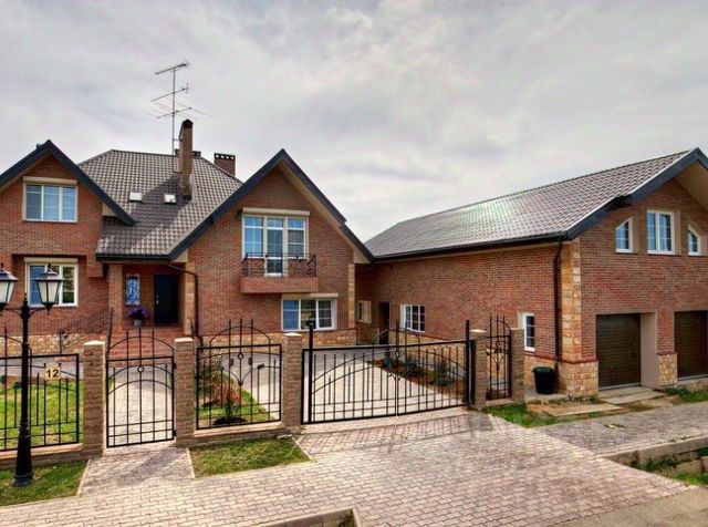 Дом расположен на угловом участке площадью 50 соток, что позволило организовать 2 въезда: центральный - для постоянного использования, дополнительный с тихой тупиковой улицы. Организована система автополива.