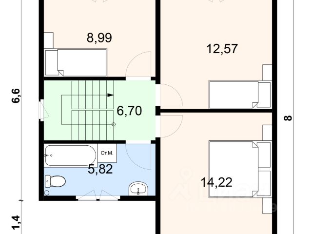 - Металлическая входная дверь, деревянные межкомнатные двери, пластиковые окна, лестница на второй этаж.