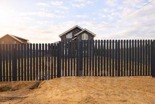 - Ограждение евроштакетник с калиткой и откатными воротами.