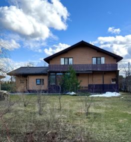 Особенности дома: интересная планировка, высокие потолки (3,3 м - на 1 этаже, 5,5 м - на втором), лесной участок - утопает в зелени, живописный вид из панорамных окон на вековые сосны, рябины, дубы.