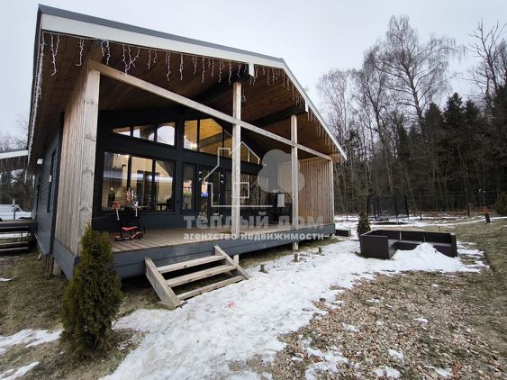 Входная дверь металлическая с терморазрывом, снаружи дом отделан сайдингом, + цокольные панели. Кровля - металлочерепица, каркас кровли и фронтоны утеплены.