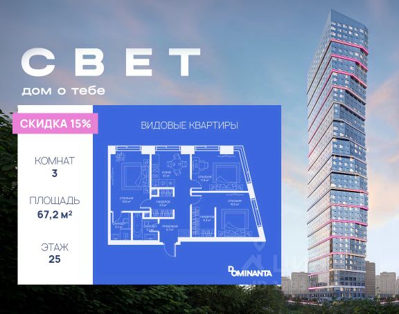 Продаётся 2-к квартира 56.8 кв.м. на 3-м этаже 51 этажного дома. Без отделки. Срок сдачи: 1 кв. 2028 г. Жилой комплекс "СВЕТ" — воплощение современного комфорта и архитектурного изящества, созданное девелопером Dominanta в сотрудничестве с известным бюро СПИЧ. Комплекс представляет собой элегантное 52-этажное здание, расположенное в Западном Дегунино, на Дмитровском шоссе, 83А. Удачное местоположение обеспечивает удобство для жителей: станция метро "Селигерская" находится в пешей доступности, что делает путь в центр Москвы быстрым и комфортным. Транспортная доступность: - 5 минут пешком до станции метро "Селигерская" - 15 минут на машине до ТТК - 16 минут на транспорте до станции МЦД "Моссельмаш" Квартиры бизнес-класса в ЖК "СВЕТ" сочетают функциональность и эстетическое совершенство. Панорамные окна наполняют жилые пространства естественным светом и открывают захватывающие виды на мегаполис. Каждый житель дома получит доступ к бесплатной клубной инфраструктер SocialHUB. Для бизнес-задач и запуска личных проектов хоум-офис c рабочими станциями, переговорными и креативной студией. Для отдыха и формирования новых социальных связей ивент-пространство, которое подойдет для вечеринки, кинопоказа или паблик-тока. Для новых побед зоны для занятия киберспортом. И главное SocialHUB полностью бесплатен для жителей, все расходы на его содержание покрываются застройщиком. Территория проекта "СВЕТ" включает несколько сценарных зон: ландшафтный парк с шаговой тропой, спортивная зона, открытый амфитеатр, двухуровневая детская площадка, уличные рабочие станции и беседки для отдыха. Сложный рельеф с искусственными холмами и живыми изгородям позволяет эффективно разделить пространство на активные зоны и уединённые "кабинеты" для работы, отдыха или медитации. В ЖК "СВЕТ" каждый найдет арену для своей энергии. Для любителей динамичных игр — павильон для падел (модного микса тенниса и сквоша). Рядом — площадка для стритбола и столы для пинг-понга, где можно устроить соседский турнир! И, конечно, абсолютный мастхэв — зона воркаут для функциональных тренировок под открытым небом. У входа в жилой комплекс гостей встречается арт-объект, разработанный Студией Артемия Лебедева. Его мягкий, волнообразный силуэт напоминает разлитый свет. С заходом солнца арт-объект оживает благодаря светоотражающим материалам его форма становится динамичной и задает настроение всему пространству. Продам квартиру двухуровневые в районе Западное Дегунино в Москве.