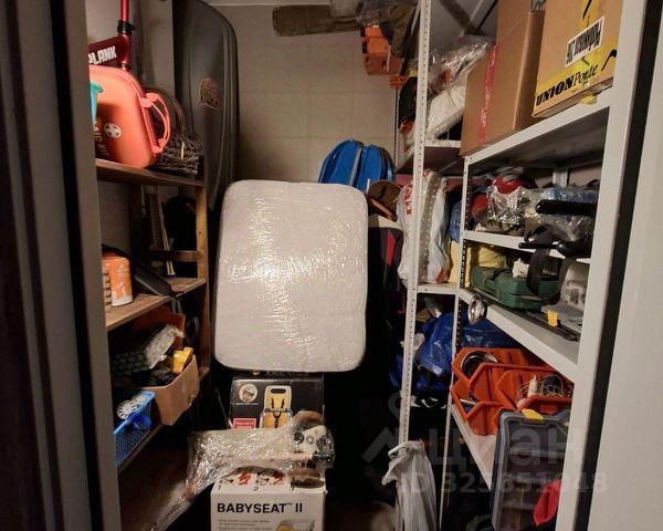 Кладовая находится на цокольном этаже жилого дома, состоит из двух частей,одна при входе с высоким потолком, высота второй части примерно 1,60-1,70 м. Сухая.
