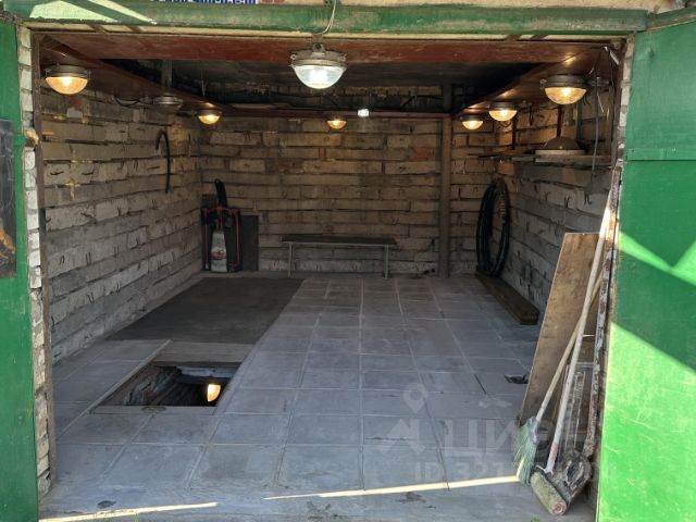 Гараж кирпичный, крыша - бетонные плиты, полки из металлического уголка, ворота утеплённые, подвал под всем гаражом, смотровая яма, верстак. Электричество. Пишите на ватсап, звонок могу пропустить.