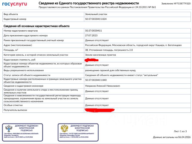 Продаётся капитальный гараж с оформленным земельным участком — редкое и выгодное предложение. Местоположение: Московская область, г.о. Кашира, п. Богатищево Площадь гаража: 32,7 м² Площадь участка: 38 м² Материал: бетон Год постройки: 1995