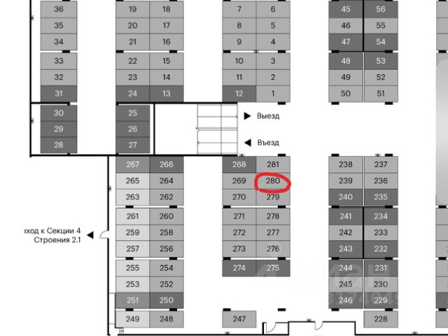 Машиноместо 280. Близко к выходу к секции 2 стр. 2.1 и к секции 5 стр. 2.2 Собственник.