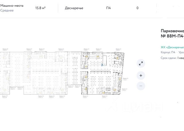 Продам машино-место площадью 15,8 кв м в строящемся подземном паркинге ЖК Деснаречье по адресу: Москва, район Троицк, ЖК Деснаречье, к4.2. 0 уровень. Машино-место 88М-П4-145. Срок сдачи: 1 квартал 2026 года. В паркинге будет круглосуточная охрана, видеонаблюдение, въезд/выезд/вход по электронным пропускам. Свет, отопление, вентиляция, система автоматического пожаротушения. Продажа через переуступку прав требования.