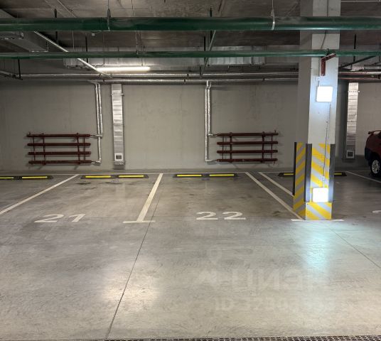 Двойное машиноместо (29,3 м2). Охраняемая теплая парковка. Находится под домом, сухое.