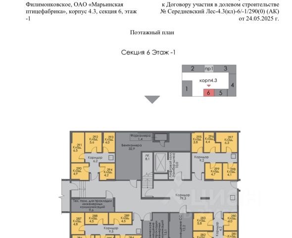 Кладовое помещение по адресу: г. Москва, НАО, поселение Филимонковское, ОАО Марьинская птицефабрика, корпус 4.3 секция 6, по переуступке прав в строящемся доме площадью 4.9 кв.м на -1 этаже . Номер 290. Срок сдачи до 31.08.2026.