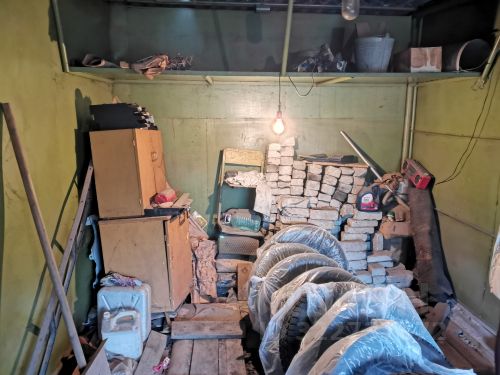 Металлический гараж-склад с хорошим полом, высоко от земли. Сделан для хранения мототехники, габаритные вещей. Автомобиль не заедет.