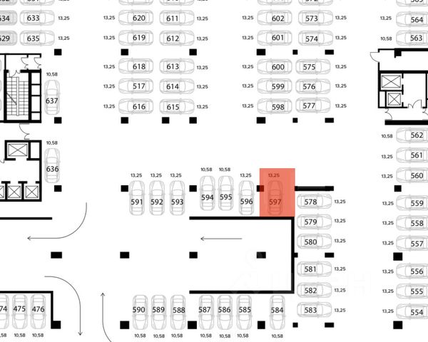 Машиноместо в подземном паркинге. 2 этаж. Прямо возле лифтов к 4 секции