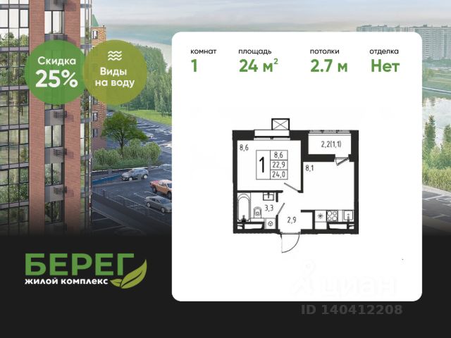 Продаётся уютная 1-комнатная квартира площадью 27,7 м² в мкр. Старые Химки, по адресу: ул. Юннатов, д. 21, корп. 19.