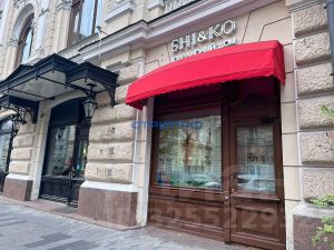 Первая линия, витрины на ул. Петровка. Окружение из шоу-румов и ресторанов.