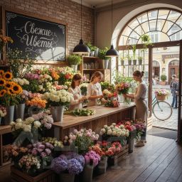Ассортимент: товары премиум класса, такие как цветы, растения и сопутс...
