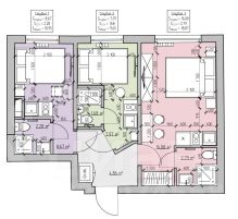 • Жилое помещение разделено на три полностью изолированные студии, каждая оборудована собственной ванной комнатой и кухонной зоной.