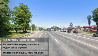 Участок 4,8 га промназначения на 1-й линии трассы М-10 Ленинградское шоссе.