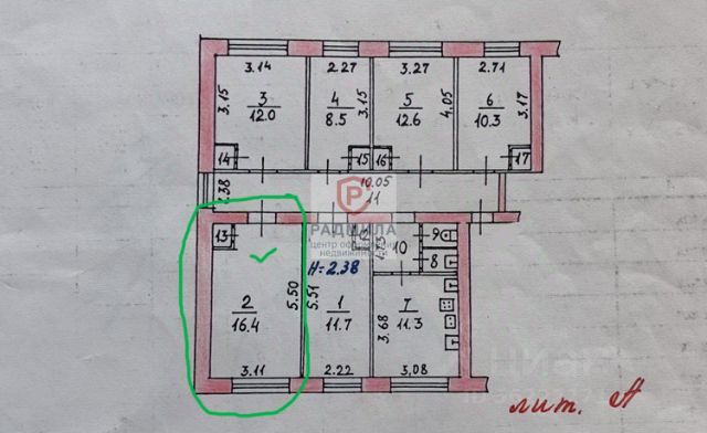 Площадь квартиры 105,1 м2, Площадь комнаты 16,4 м2. Дверь в комнату с замком, комната угловая, но очень теплая и сухая. Кухня 11,3 м2, санузел раздельный.