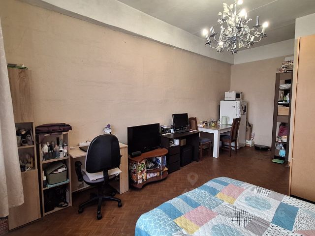 Комната чистая, в жилом состоянии. Что нужно будет в комнате оставить -- оставим, что вывезти -- самостоятельно вывезем. Окна выходят во двор. Санузел раздельный. Раздельные зоны и техника для каждой комнаты. Также в собственности есть вторая комната с балконом площадью 25 квадратных метров в этой же квартире.