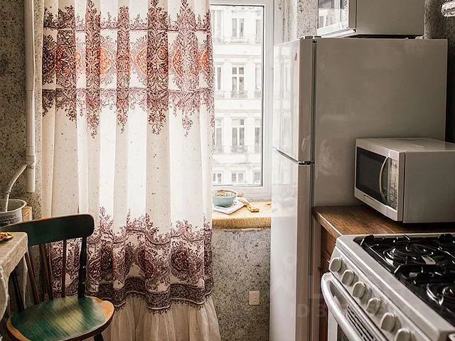 Санузел совмещенный, окна выходят на улицу, что обеспечивает достаточно света в течение дня. Просторная кухня.