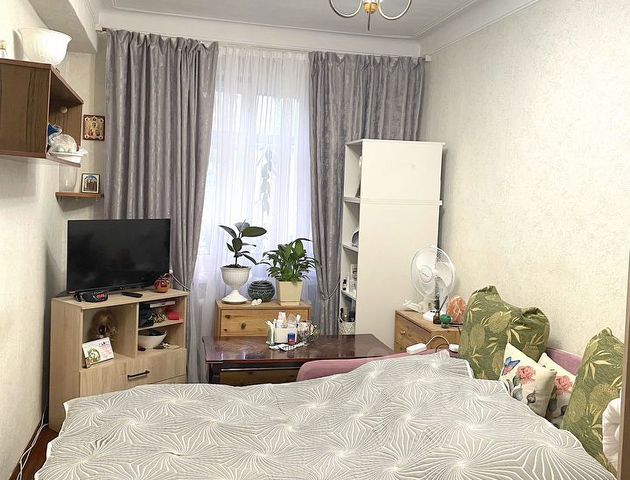 Комната в нормальном, среднем состоянии, светлая и тёплая. Спокойные, тихие соседи (в двух комнатах женщины, третья комната пустая). Для жизни и быта есть все: стиральная машинка (стоит на кухне), холодильник, новая газовая плита.