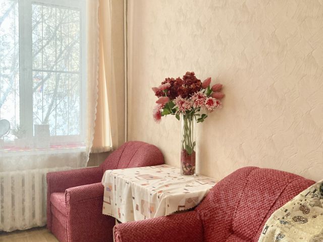Окна комнаты выходят в тихий зеленый двор, ориентированы на юг.