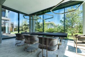Монолитный трёхэтажный дом построен в 2007 году. Архитектура и оформление интерьера выполнено в романтичном замковом стиле. Внутреннее пространство — это воплощение роскоши с использованием мрамора, гранита, дуба и итальянского керамогранита, дополненное элементами ручной ковки, авторскими предметами интерьера и предметами искусства. Объект полностью укомплектован мебелью и техникой, которые остаются новому владельцу. Технологическая оснащенность дома включает в себя: теплые полы во всех помещениях, приточно-вытяжную систему вентиляции, систему водоподготовки, камин с принудительным выводом дыма и охранную систему.