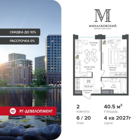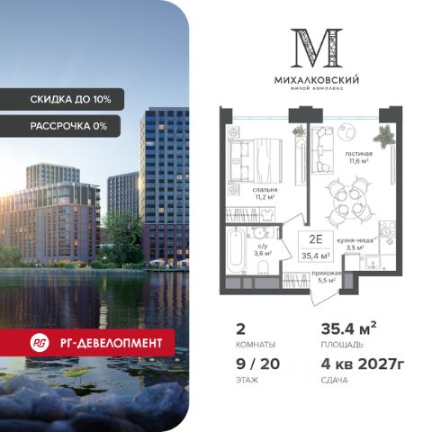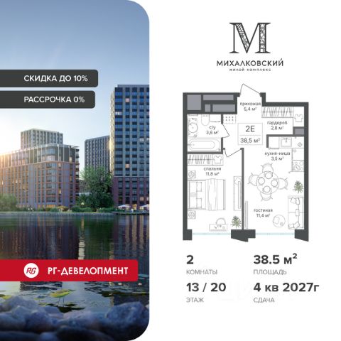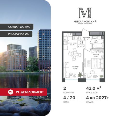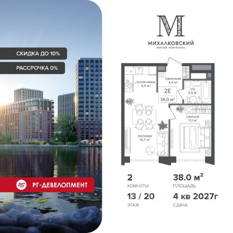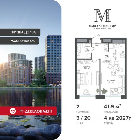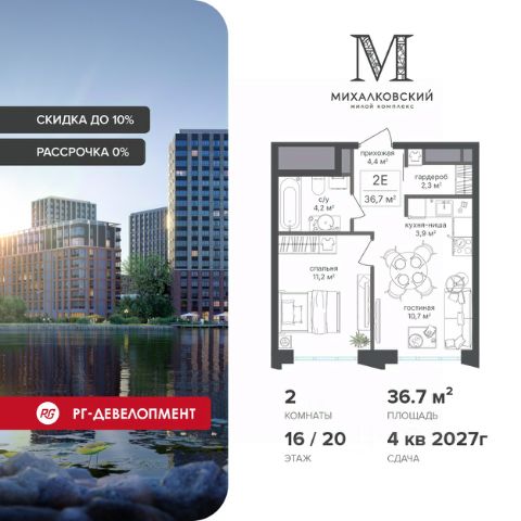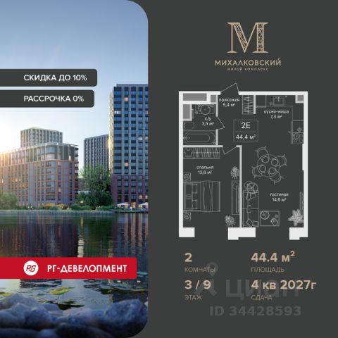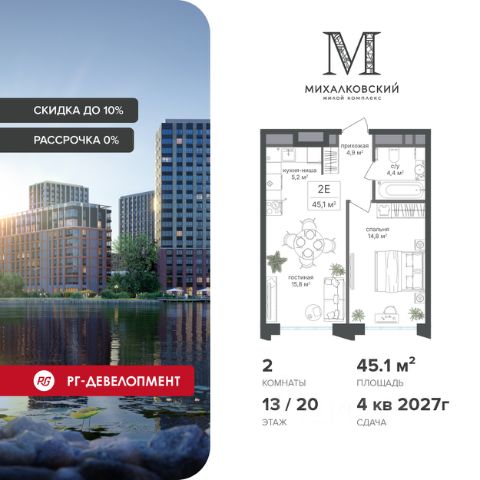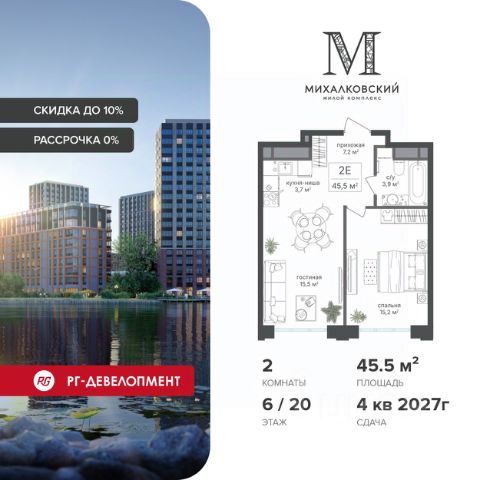 Ипотека для каждого! Полная стоимость кредита от 11,578% до 22,490%. Ставка от 0,11% в АО "Альфа-Банк" фиксируется на 1 год с даты заключения кредитного договора, далее полная стоимость кредита от 25,819% до 28,767% ставка 25,39% до окончания срока кредитования. Первоначальный взнос — от 20% от стоимости квартиры. Срок кредитования — от 3 до 30 лет. Скидка 9% при покупке квартиры! Продаётся 2-к квартира 45,5 кв.м. в ЖК "Михалковский" на 6-м этаже 20 этажного дома. Компания "РГ-Девелопмент" предоставляет скидки на квартиры в жилом комплексе. Акция действительна с 12.09.2024 г. до 15.10.25г. включительно. Для того чтобы воспользоваться предложением, необходимо подписать договор на приобретение недвижимости до 15.10.25г., включительно. Рассрочка 0% + Скидка 5%. При приобретении дольщиком квартиры в любом из двух данных корпусов с использованием способа оплаты "Рассрочка 0%", у покупателя также есть право воспользоваться скидкой в размере 5% от полной стоимости квартиры. Условия программы рассрочки: Первый платеж составляет 20% от стоимости объекта и вносится при заключении ДДУ. Второй платеж в размере 20% от стоимости объекта вносится по истечении 12 месяцев со дня подписания ДДУ. Оставшаяся сумма, в размере 60%, выплачивается за месяц до планового срока ввода ЖК в эксплуатацию, то есть не позднее 31.05.2027. Действует на приобретение квартир в корп. 2, 7. Действует программа "Растет семья - растет и квартира". Прямая продажа от застройщика! Старт продаж новых корпусов. Квартиры без отделки. Срок сдачи IV кв. 2027г. Особенности проекта: Завораживающие виды Красивое благоустройство Уникальная локация для Москвы (рядом Головинский парк, пруды, усадьба Михалково) Рядом с центром В проекте присутствует: архитектура голландского бюро MLA+, зеленые зоны, транспортная доступность, благоустроенная территория, подземный паркинг, детский сад и выход на Головинский парк с пятью прудами. Название комплекса указывает на одну из его черт - соседство с имением Михалково. Позвольте себе жить в месте, где проводили свой досуг династии Дашковых и Паниных.