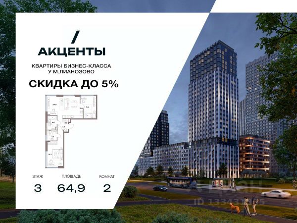 Трехкомнатная евроквартира для большой семьи. -Угловая планировка с видом на 2 стороны -Мастер-спальня с личной ванной и местом для гардеробной и детская с угловым остеклением -В квартире предусмотрено панорамное остекление -Второй санузел для удобства каждого члена семьи -Большая кухня-гостиная в центре квартиры для семейных торжеств -Удобная ниша в коридоре для системы хранения -Вторая спальня для организации детской или рабочего кабинета Жилой комплекс "Акценты" — это монолитный проект бизнес-лайт класса, расположенный в северной части Москвы, в районе Восточное Дегунино. Комплекс объединяет 19 жилых корпусов высотой от 7 до 30 этажей, возводимых на территории 11,7 гектара. В рамках проекта предусмотрены квартиры различной площади — от компактных студий до просторных трехкомнатных решений, с высотой потолков 2,85 м и вариантами отделки, включая чистовую отделку. Благодаря архитектуре бюро АПЕКС и панорамному остеклению, помещения наполняются естественным светом. Удачное расположение рядом с метро "Лианозово" и МЦД делает комплекс удобным как для жизни, так и для инвестиций. Комфорт и безопасность Каждый корпус оборудован современными лифтами с выходом на все этажи, включая подземный паркинг. Входные группы спроектированы с учетом принципов безбарьерной среды: предусмотрены места для колясок и велосипедов. В лобби вас будут ждать уютное пространство с зоной для кофе, стеллажами для обмена книгами и мягкой зоной ожидания такси или курьера. Для автомобилистов организован двухуровневый подземный паркинг на 494 машиномест, с системой распознавания номеров и станцией подкачки шин. Вся территория комплекса закрыта и охраняется: контроль доступа и система видеонаблюдения обеспечивают безопасность жителей. Отдельное внимание уделено цифровой инфраструктуре — проект поддерживает современные "умные" сервисы для комфортного управления бытом. Архитектура Архитектурная концепция ЖК разработана бюро АПЕКС: элегантные фасады с натуральными фактурами, панорамное остекление и переменная этажность формируют выразительный и современный облик. Дизайн каждой секции уникален и дополнен эргономичными планировочными решениями. Ступенчатая структура застройки обеспечивает приватность и оптимальную инсоляцию. Благоустройство На территории комплекса реализована концепция "двор без машин". Центральное пространство оформлено как закрытый двор-сад с пешеходными аллеями, зонами отдыха, террасами и вечерней подсветкой. Здесь находятся детские и спортивные площадки, спортивные площадки, коворкинги на открытом воздухе и зоны отдыха. Также предусмотрены зоны для выгула собак с удобствами для гигиены питомцев. Окружение и досуг ЖК "Акценты" расположен в окружении развитой городской инфраструктуры. В шаговой доступности находятся школы, супермаркеты, спортивные объекты и остановки общественного транспорта. До станции метро и МЦД "Лианозово" можно дойти за 7 минут, а до станции "Яхромская" — за 1215 минут. Поблизости расположены природные зоны — парк "Север