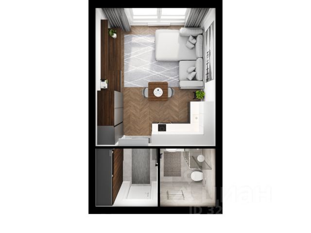 Общая площадь квартиры — 27,9 кв. м, что является увеличенным метражом для студий в данном сегменте. Планировка продуманная и эргономичная: пространство организовано удобно, без ощущения тесноты, с возможностью комфортного проживания или использования объекта в инвестиционных целях.