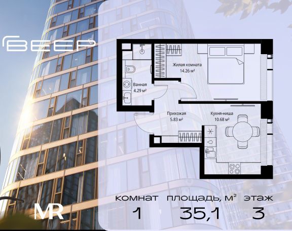 Старт продаж новой очереди! Продаётся 1-комнатная квартира общей площадью 32.97 м² без отделки в ЖК Веер на 2-м этаже 70 этажного дома. Веер.2 — вторая очередь футуристичного квартала бизнес-класса Веер. Это новая экосистема в престижном Западном округе Москвы, поражающая масштабностью внутренней инфраструктуры. ЖК находится всего в 5 минутах от Кутузовского проспекта и в 15 минутах от Сколково. Ансамбль из четырех стеклянных башен с доминантой в 237 метров разработан по принципу современного урбанизма и выражен в лаконичных объемах — параллелепипедах со сглаженными углами, которые придают зданиям утонченный вид. Расположение и транспортная доступность: • Образовательный комплекс в составе топовой школы, состоящий из двух зданий: основное на 1500 школьных и 450 дошкольных мест, отдельное здание детского сада на 300 мест. • Парк "Долина реки Сетунь" площадью более 700 гектаров • Рядом МГУ, МГИМО, РАНХиГС и Академия ФСБ • 15 минут по Кутузовскому проспекту до ужина в центре с видом на Москву-реку • 18 минут пешком до м. "Давыдково" • Открытие новых станций метро в шаговой доступности в будущем Инфраструктура: Двор в Веер.2 — это ассиметричные холмы, каменные "лабиринты", зеленые ковры и хвойные островки с единой живой экосистемой. Здесь есть все: • Павильон умиротворения Место отдыха под навесом в спокойной части двора, окруженное деревьями. • Активная тропа Тактильная дорога из камней разного диаметра для расслабляющих прогулок. • Бизнес-гарден Оборудованное пространство для работы на свежем воздухе со столом и встроенными розетками. • Детская площадка Двухуровневая площадка "Ботаника" с песочницей, переговорной трубой и горкой "Дружба". Компания MR предлагает своим клиентам специальные условия приобретения квартир в рамках программ ипотечного кредитования от банков-партнеров.